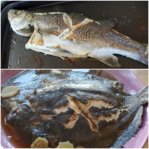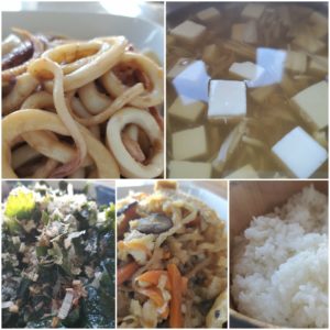 ☆スズキの塩焼き☆ナメタガレイの煮付け☆きのこ汁☆ヤリイカのソテー☆わかめのサラダ☆玄米入りご飯/白米☆切り干し大根の煮物☆王林
