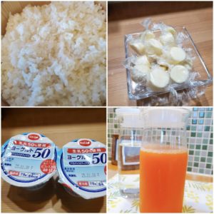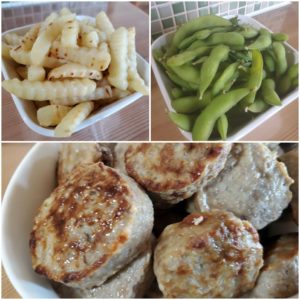 ☆ハンバーグ☆枝豆☆ポテトフライ☆ご飯☆キャンディーチーズ☆ヨーグルト☆野菜ジュース