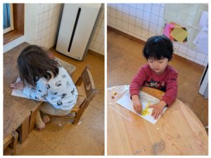 絵を描くことが大好きな2人は思い思いに絵を描き自分のイメージしたものを表現していました♪