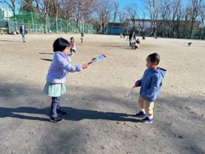 羽根つきをしてお正月遊びを楽しんだり、鬼ごっこやボール遊び、砂遊びなど好きな遊びを楽しみました♪