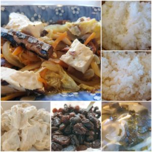 ☆さんまのすき焼き風煮☆玄米入りご飯/白米☆わかめと油揚げの味噌汁☆里芋の味噌マヨサラダ☆レーズン
