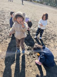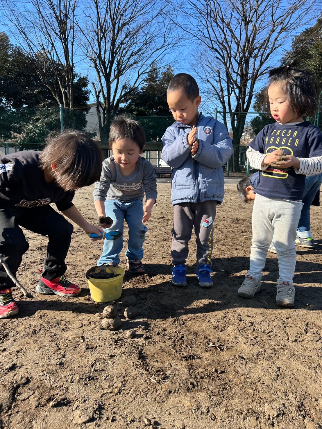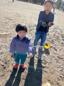 お団子を作ったりカップに集めたり…手についた泥も何だか嬉しそうに見せていました☺