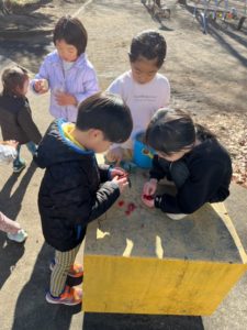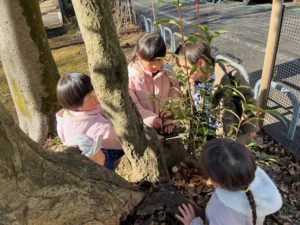 散歩に出かけると大きな木の上をじーっと見つめる年長さんの女の子。視線の先には白く膨らんだ蕾が見えました。「まだ寒いけど春みたいだね」と、小さな春をこっそり見つけていたのでした✨