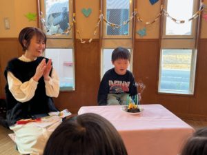 おやつの時間は年長さんのお兄ちゃんのお誕生日会を開きました♪