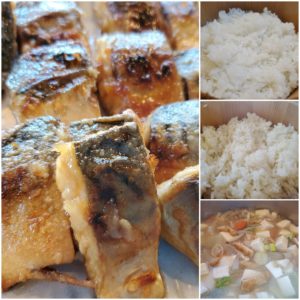 ☆鯖の照り焼き☆玄米入りご飯/白米☆根菜汁