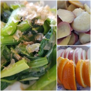 ☆小松菜のおかか和え☆蒸かしさつま芋☆オレンジ/りんご