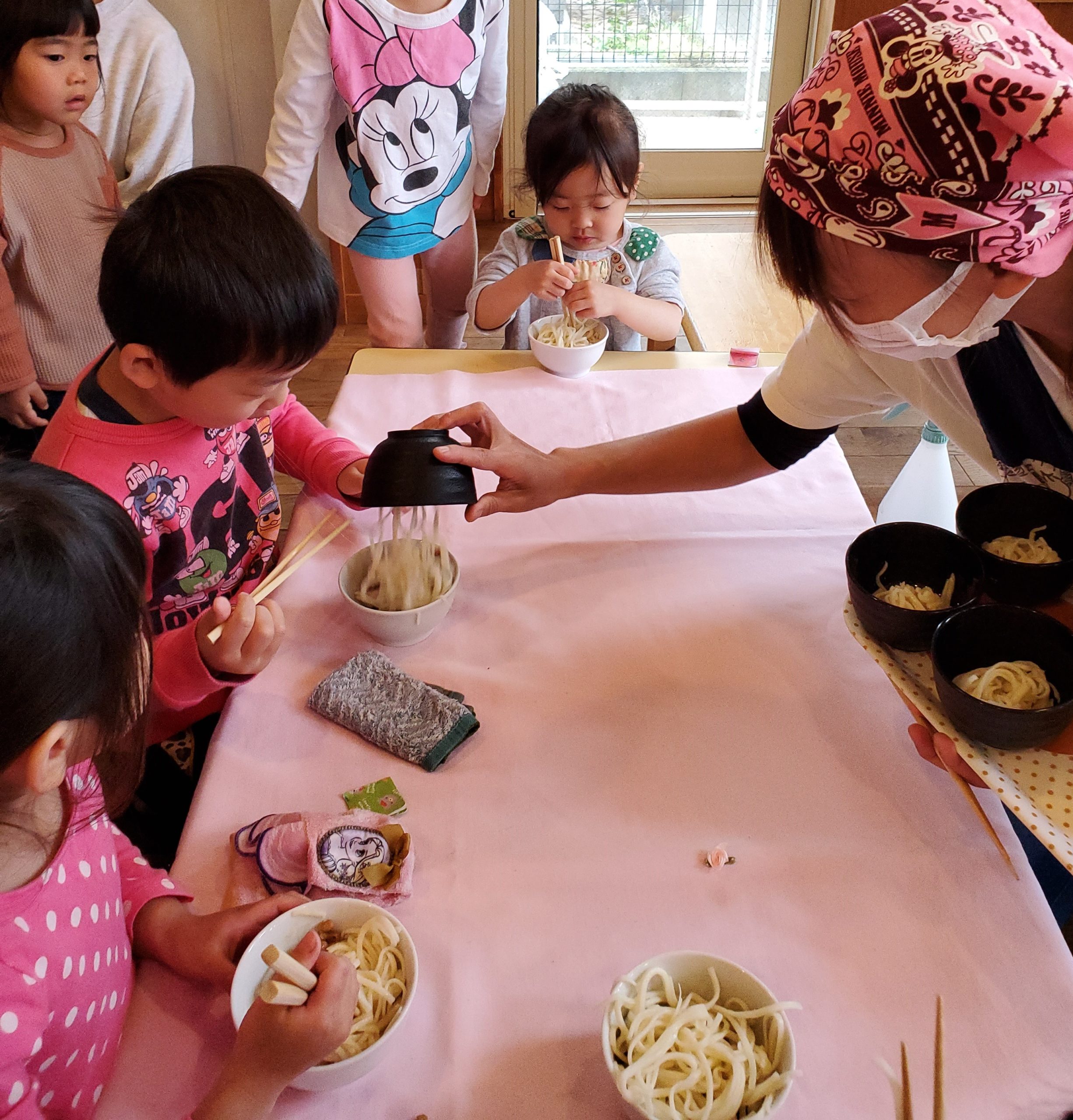 今日のランチは〝わんこ納豆うどん大会〟を開催しました。わんこって犬⁈と、どんなランチなのか「ドキドキする~」と楽しそうにしていました。ようは、わんこそばの納豆うどんバージョンです!器の中が空になると「ほいっ!」と、おかわりのうどんが入ってきて、おしまいの合図が出るまで続きます(笑) おしまいの合図が先か?おかわりが先か?その駆け引きが面白かったです!