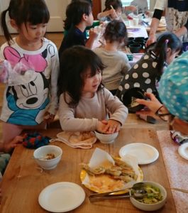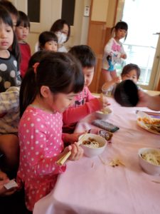 3わんこから多い子は13わんこまで!楽しく面白い雰囲気の中で、思わず食が進む子ども達でした!わんこ納豆うどん大会大成功❕