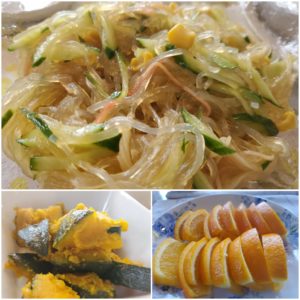 ☆春雨中華サラダ☆南瓜のガーリックソテー☆オレンジ