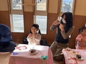 今日のおやつの時間に2月産まれのお友達3人のお誕生日会をしました♪
