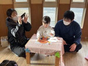 まずは3人が大好きなアンパンマンの福笑いゲームをして楽しみました♪そして・・・