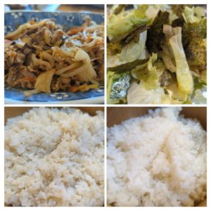 ☆豚肉と野菜の炒め☆玄米入りご飯/白米☆レタスのりサラダ