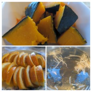 蒸かし南瓜☆わかめともやしのスープ☆オレンジ