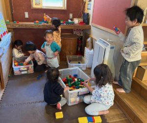 さて、年長さんが不在のどんぐりでは年中さんと年少さんが、〝今日は私たちが小さい子を守る!〟と、張り切っていました。