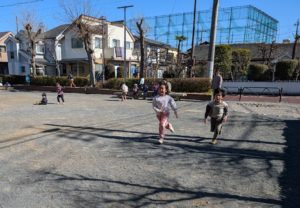 グラウンドは工事車両が入っていたので、場所をクローバ公園に変更👉