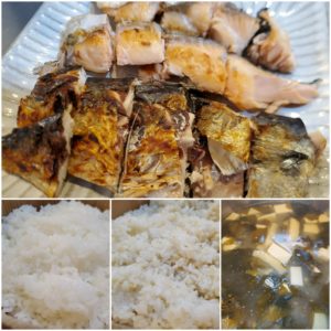 ☆鯖と鮭の塩焼き☆玄米入りご飯/白米☆豆腐とわかめの味噌汁