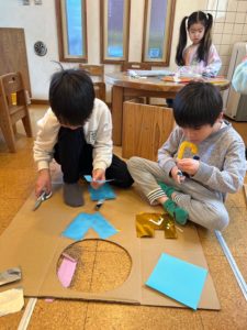 お部屋では来週のひな祭り会に向けて年長さん達が準備を進めています♪