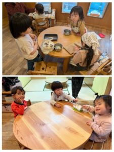 『つもるかなぁ~?!』とワクワクしていた子ども達は昨日の帰りや登園前に雪に触れてきた子もいたようで『つめたかったよ・・・!!』と嬉しそうに教えてくれました😊