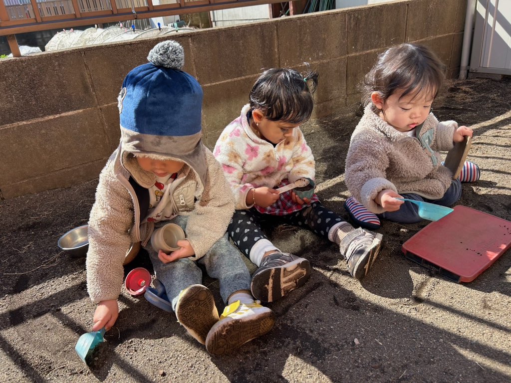 朝は冷え込んでいましたが朝の集いが終わる頃にはお庭もポカポカに😊