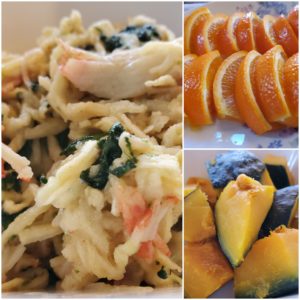 ☆切干大根とほうれん草のデリサラダ☆蒸かし南瓜☆オレンジ