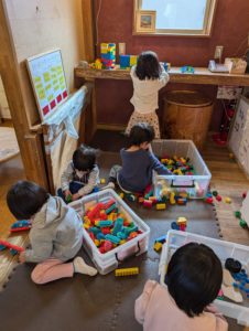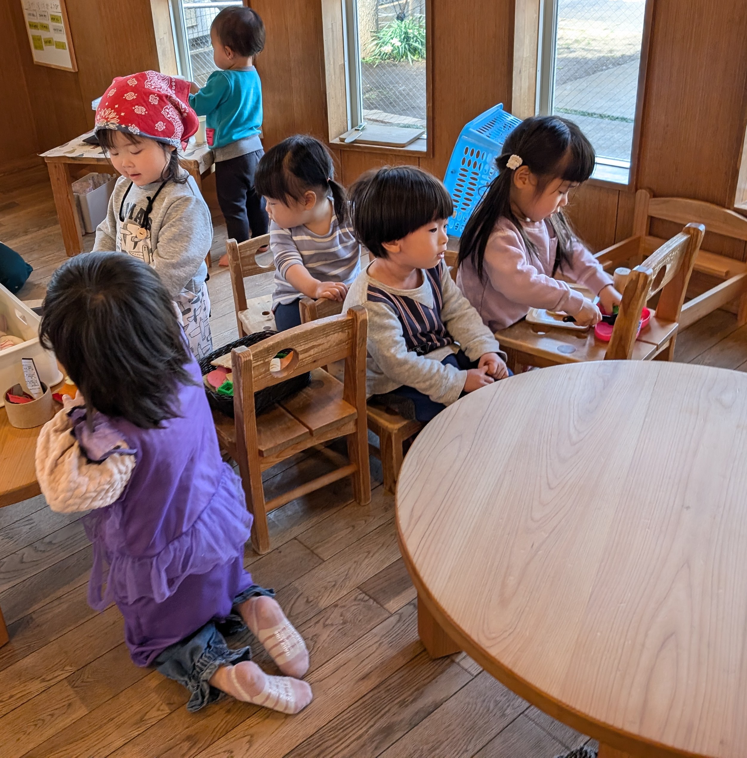 今日は年長さん達が出かけていたので小さい子達はお部屋で過ごすことにしました。