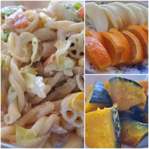 ☆マカロニサラダ☆蒸かし南瓜☆オレンジ&りんご