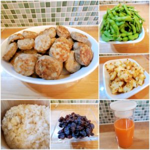 ☆ハンバーグ☆ポテト☆ご飯/ふりかけ☆枝豆☆レーズン☆野菜ジュース