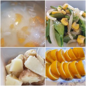 ☆ハヤシライス☆春キャベツのサラダ☆新玉葱のスープ☆スナップエンドウのソテー☆ホクホク新じゃが芋☆オレンジ