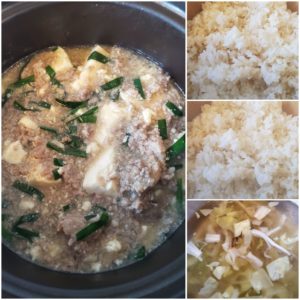 ☆麻婆豆腐丼(玄米入りご飯/白米)☆キャベツときのこのスープ