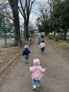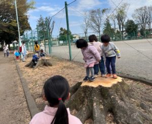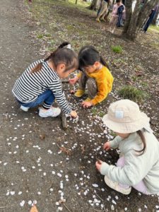 どんぐりの子ども達はグラウンド周りの桜を見に行きました!