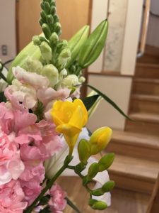 毎週火曜日にお花屋さんからどんぐりの玄関にお花が届きます。