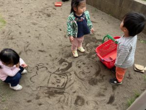 地面に描かれたアン○○マンの絵をめぐり、どちらも自分のアン○○マンだと言って譲りませんでした💦