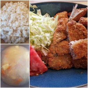 ☆玄米入りご飯☆新じゃがの味噌汁☆魚のミックスフライ