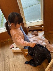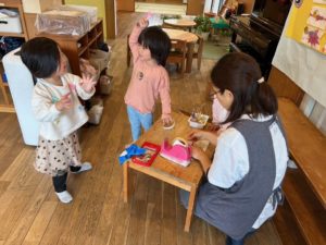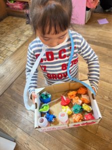 ないのがわかると自分で工夫して紙で紐を作っていました。