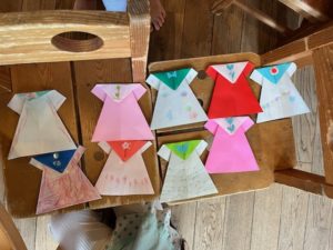お洋服やさんは朝スタッフと一緒に作りました。