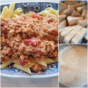 ☆ペンネのボロネーゼ☆食パン☆豆乳スープ