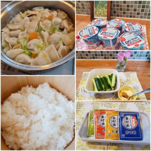 ☆具だくさん餃子スープ☆ご飯☆ふりかけ☆胡瓜スティック☆ヨーグルト