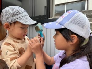 虫探しをしたりスイーツ屋さんをオープンさせたり好きな遊びを楽しんでいた子ども達です!
