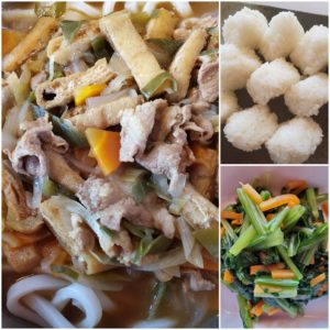 ☆カレーうどん☆おにぎり☆ほうれん草と人参のお浸し