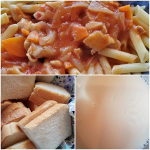 ☆チキンのペンネのトマト煮込み☆食パン☆コーンスープ