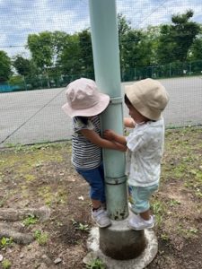 木陰の多いグラウンドの外周で遊びました!