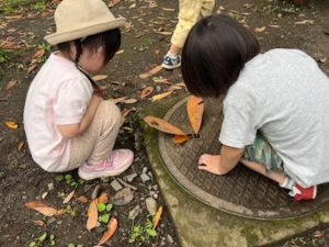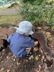 雨上がりで大きな木の窪みにたまるちょっとした水溜まりを見つけたり虫探しに夢中の子ども達でした✨