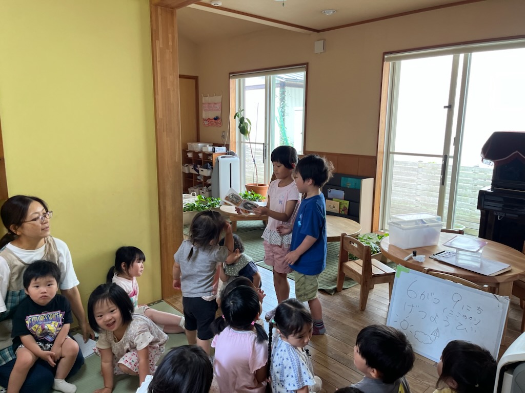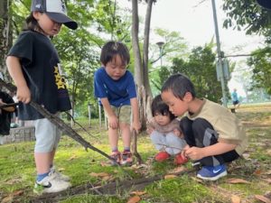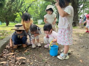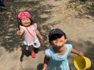 天気やみんなの体調とも相談してグラウンドの日陰に行くことにしました。