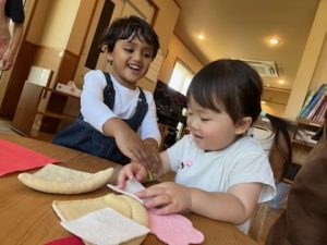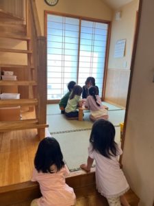 今日もお部屋で過ごしました。赤ちゃん役とその子たちをお世話するお母さん役とのごっこ遊びをしたり