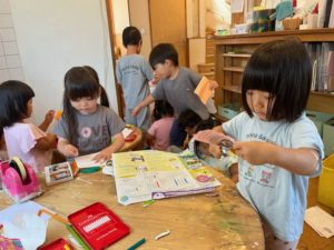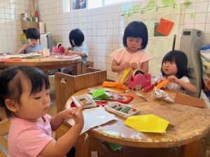 アトリエもこんなの作ろう、切ったり描いたりを楽しんでいました。