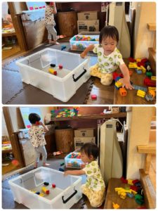 ブロックあそびが終わると自らお片付け。お友だちの分までやってくれていました。