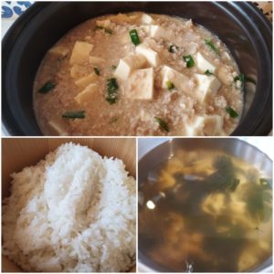 ☆麻婆豆腐丼(白米)☆わかめと舞茸のスープ