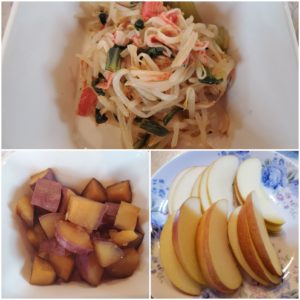 ☆青梗菜ともやしのナムル☆さつま芋の甘煮☆りんご