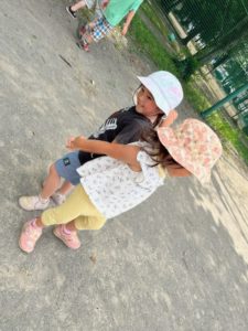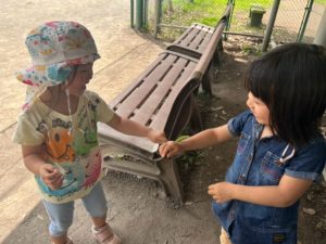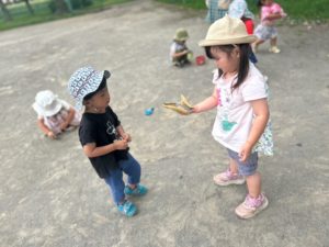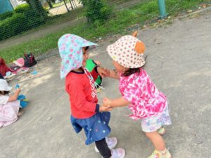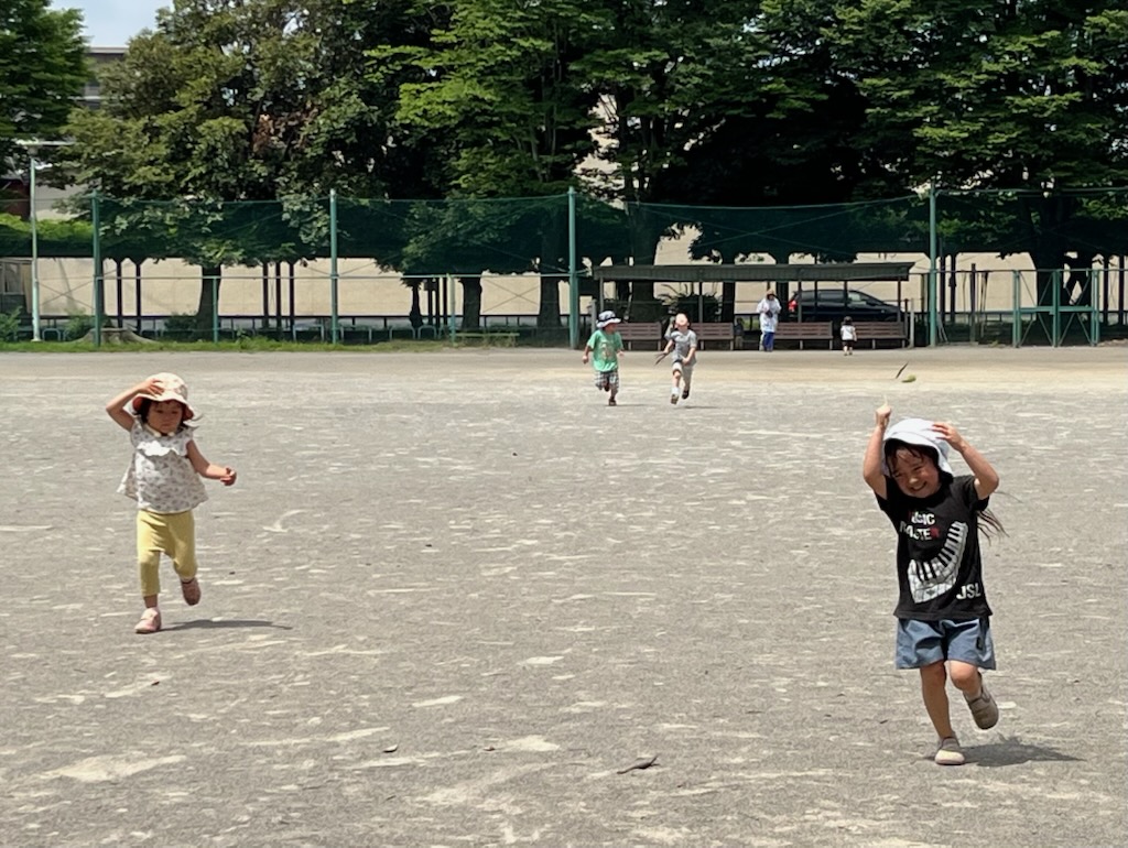朝のうちは時折雲が日差しを隠してくれたので、グラウンドで思いっきり身体を動かす事を楽しんでいた子ども達です😊