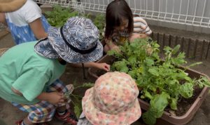ラディッシュ大収穫!収穫と共に葉っぱを食べていたあおむし君🐛に大盛り上がりでした🙌